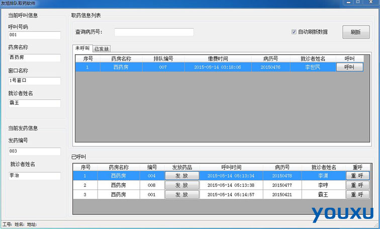 4、可在窗口屏上显示当前可取药的人员信息。